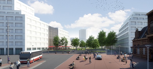 Vanaf het Stationsplein vormt de grote zittrap de entree van het stadspark. Een beloftevol onthaal door een open stad. Delft wil als centrale Metropoolstad, het centrum van de stad uitbreiden met een eigentijdse Delftse uitstraling en sfeer. Daarbij gaat het om de juiste mix van voorzieningen, de kwaliteit van de inrichting van de openbare ruimte, een goede afwikkeling van het autoverkeer, ruimte voor de flanerende voetganger en vooral om de juiste invulling van plinten op de begane grond van gebouwen. Hierdoor biedt de plek unieke ontwikkelmogelijkheden: een uitgelezen kans voor centrumwonen en ondernemerschap.